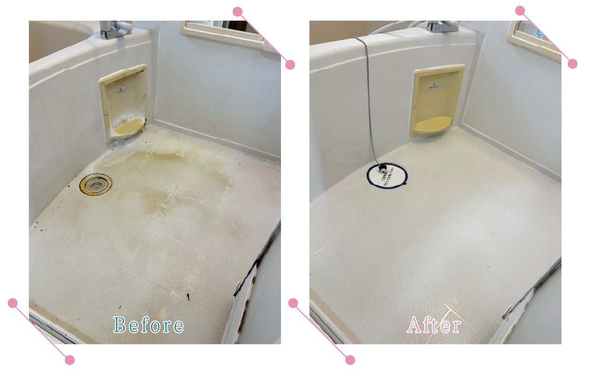 「バスルーム床」の清掃事例です。頑固な汚れを美しく!